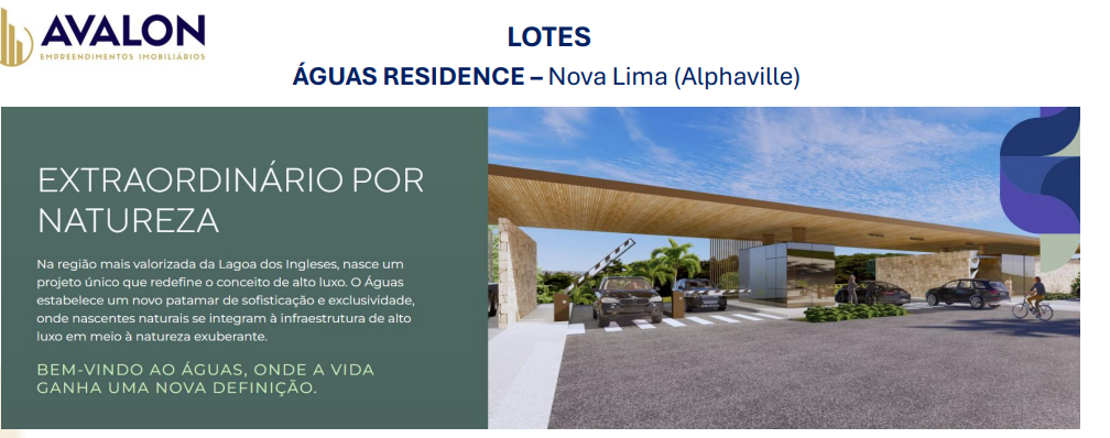 Lote à Venda – Águas Residence, Alphaville Lagoa dos Ingleses, Nova Lima (MG)